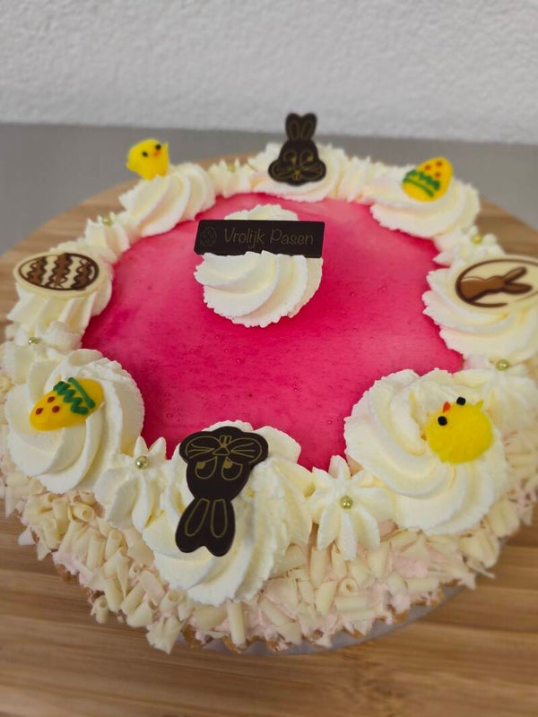 Witte chocolade framboos vlaai Pasen
